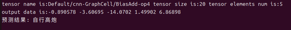 1std::vector<float> floatArrayToVector(const float *array, size_t size) { 2 std::vector<float> vec(array, array + size); 3 return vec; 4} 5 6std::vector<float> numpy_exp(const std::vector<float> &x) { 7 std::vector<float> result; 8 result.reserve(x.size()); 9 for (float num : x) { 10 result.push_back(exp(num)); 11 } 12 return result; 13} 14 15float sum_rows(const std::vector<float> &vec, int axis) { 16 float sum = std::accumulate(vec.begin(), vec.end(), 0.0); 17 return sum; 18} 19 20std::vector<std::vector<float>> convertTo2D(const std::vector<float> &vec, int rows) { 21 std::vector<std::vector<float>> result; 22 if (vec.empty() || rows <= 0) { 23 return result; 24 } 25 int cols = (vec.size() + rows - 1) / rows; // 计算列数 26 for (int i = 0; i < rows; ++i) { 27 std::vector<float> row; 28 for (int j = 0; j < cols; ++j) { 29 size_t index = i * cols + j; // 计算索引 30 if (index < vec.size()) { 31 row.push_back(vec[index]); 32 } else { 33 row.push_back(0); // 填充剩余空间,或者你可以选择不填充 34 } 35 } 36 result.push_back(row); 37 } 38 return result; 39} 40 41void GetOutputData(std::vector<MSTensor> &outputs) { 42 for (auto tensor : outputs) { 43 std::cout << "tensor name is:" << tensor.Name() << " tensor size is:" << tensor.DataSize() 44 << " tensor elements num is:" << tensor.ElementNum() << std::endl; 45 auto out_data = reinterpret_cast<const float *>(tensor.Data().get()); 46 std::cout << "output data is:"; 47 for (int i = 0; i < tensor.ElementNum() && i <= 50; i++) { 48 std::cout << out_data[i] << " "; 49 } 50 std::cout << std::endl; 51 std::vector<float> out = floatArrayToVector(out_data, tensor.ElementNum()); 52 std::vector<float> exp_x = numpy_exp(out); 53 float sums = sum_rows(exp_x, 1); 54 std::vector<float> x1; 55 for (float num : exp_x) { 56 x1.push_back(num / sums); 57 } 58 std::vector<std::vector<float>> twoD = convertTo2D(x1, 1); 59 std::vector<int> argmax_indices = argmax(twoD); 60 std::vector<std::string> Predicted_class = {"装甲侦察车", "装甲运输车", "不明", "坦克", "自行高炮"}; 61 std::cout << "预测结果: " << Predicted_class[argmax_indices[0]] << std::endl; 62 } 63}